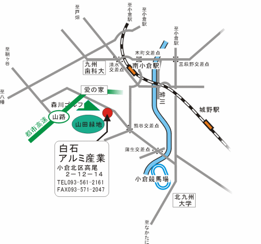 白石アルミは、競馬場←→八幡の抜け道の途中にあります!